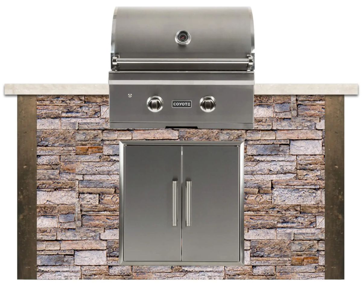 This Outdoor Kitchen island includes a Coyote 28″ C-Series Built-In Grill available in either natural gas or propane (sold separately).