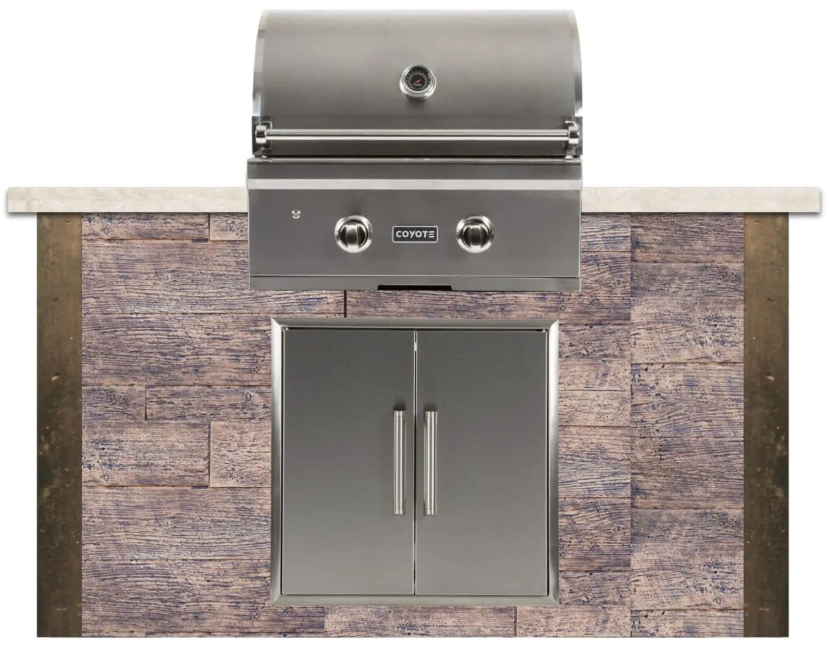 This Outdoor Kitchen island includes a Coyote 28″ C-Series Built-In Grill available in either natural gas or propane (sold separately).