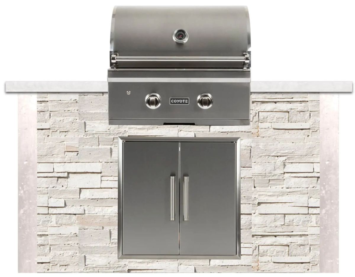 This Outdoor Kitchen island includes a Coyote 28″ C-Series Built-In Grill available in either natural gas or propane (sold separately).