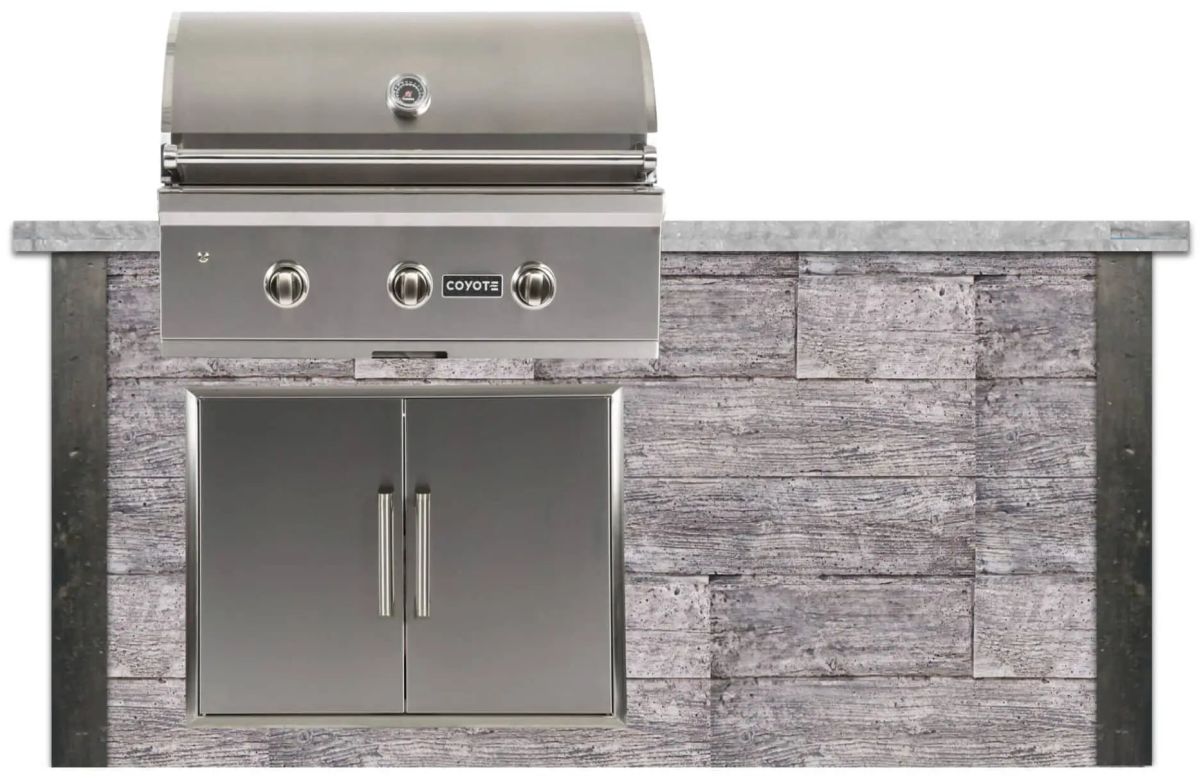 Easily access your outdoor kitchen island interior with the Coyote 31″ double access doors (sold separately). One benefit of RTA Outdoor Living’s high-strength concrete panel construction is that the surround is completely hollow allowing for maximum use of the space under your outdoor kitchen.