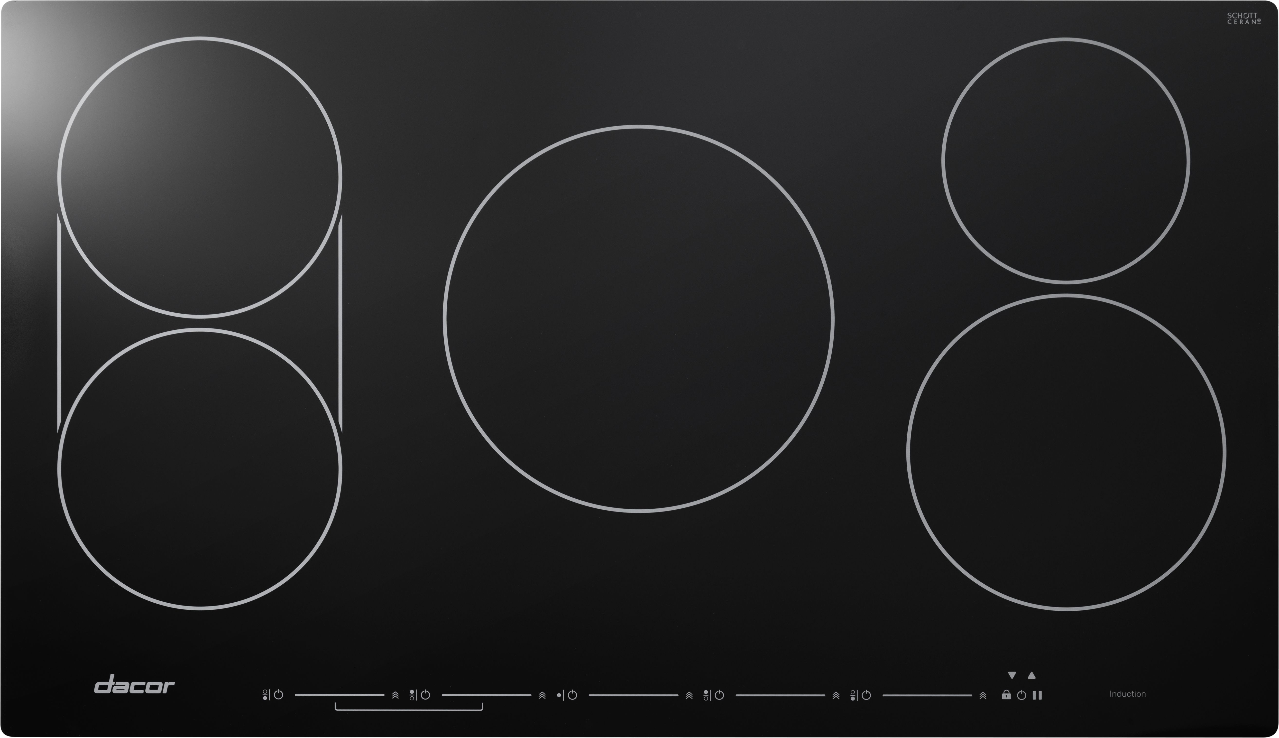 Dacor® Heritage Discovery® 36" Induction Cooktop-Black with 5 burners, child lock and hot zone warningRead More