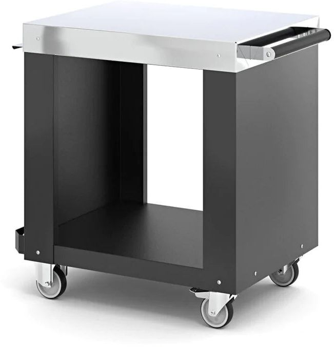 Not only is it mobile, but it also includes a lower tier for storing essential materials and a four-space tool holder for your pizza peel, turning peel, cleaning brush, and ash shovel.