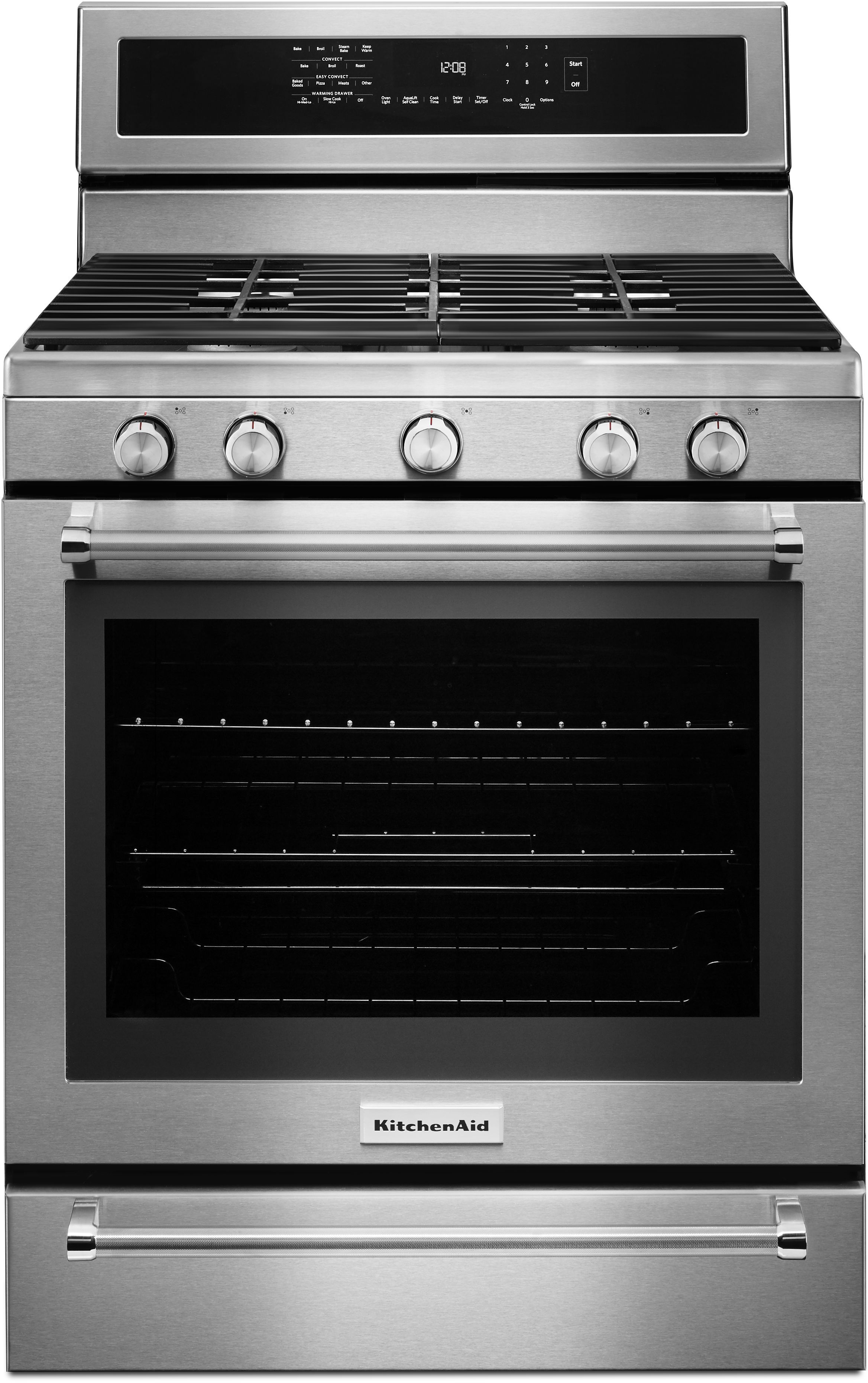 KitchenAid® 30" Free Standing Gas Range-Stainless Steel with 5.8 cu. ft. oven capacity, keep warm mode, convection cooking and a warming drawerRead More