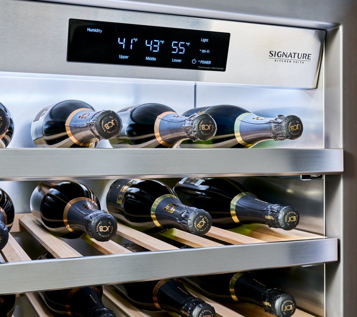 Three Independent temperature zones keep sparkling, white, and red wines at the right temperature to bring out the very best taste.