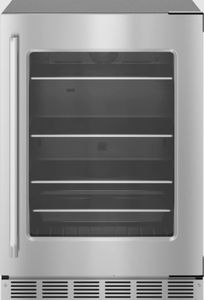 Thermador® Masterpiece® 5.2 Cu. Ft. Beverage Center in stainless steel with Masterpiece® Series handle. The under counter beverage center features 4 tempered glass shelves, adjustable LED lighting and 3 pre-set cooling modes.Read More