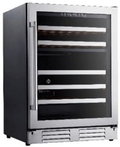 The Vitara 24" Stainless Steel Wine Cooler features a built-in or free standing installation and a seamless stainless steel door frame. With a temperature range of 40-50 °F on top and 50-64 °F on the Bottom, it has no frost with interior fan circulating.Read More